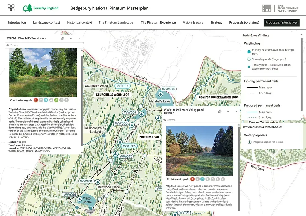 The Bedgebury Landscape Masterplan is the result of close collaboration between our client and TEP’s Landscape Architects, Landscape Managers, Ecologists and GIS specialists. Our shared vision was to prepare technically robust, cross-cutting proposals and to communicate them in an innovative and visually engaging way. We are grateful for the support of all the staff at Bedgebury, but particular thanks must go to Dan Luscombe (Curator) and Emma Bacon (Nursery Supervisor) who helped us bring the plan together.