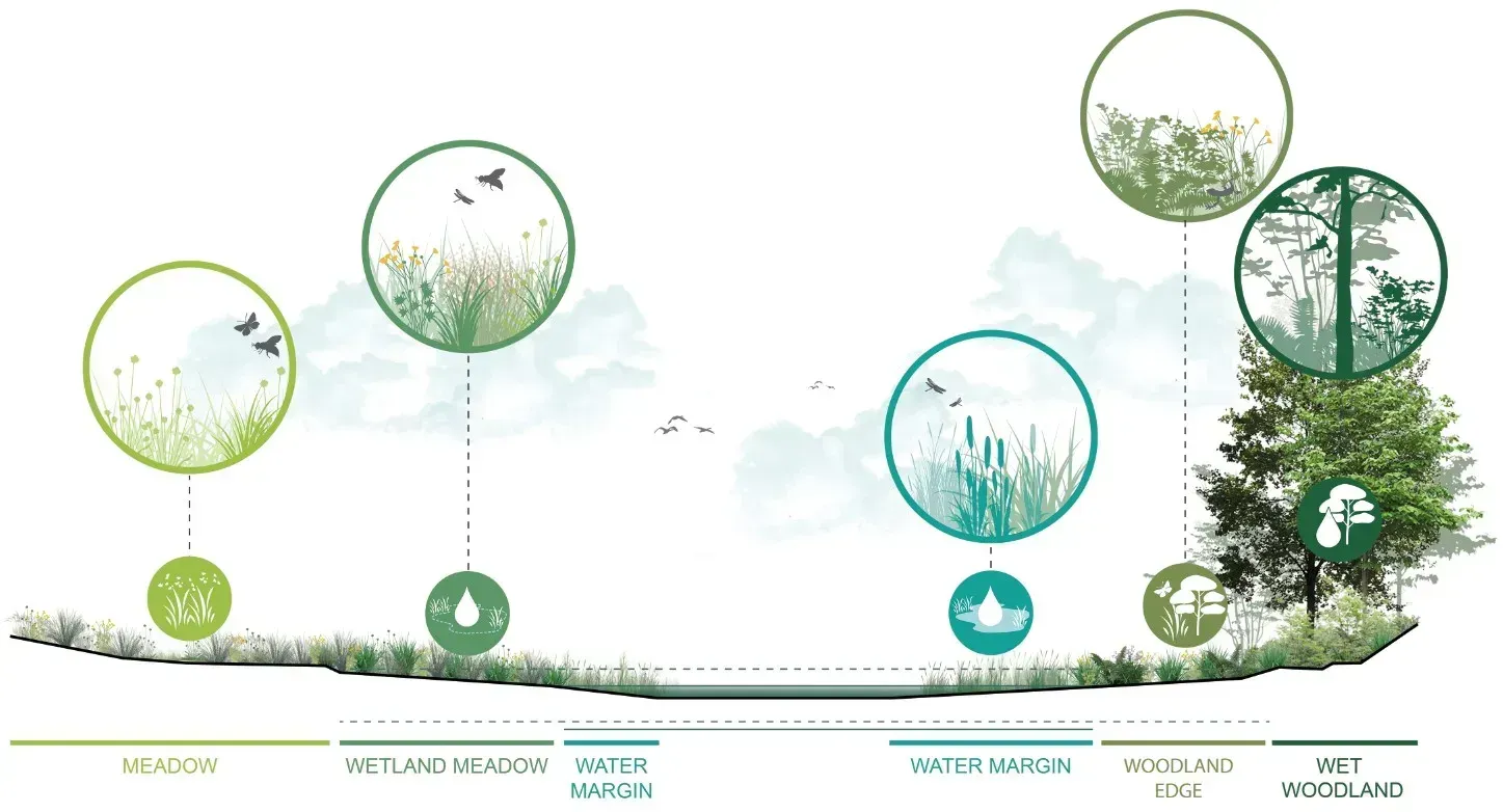 Illustrative section through proposed wetland, William Wroe Meadows, Greater Manchester