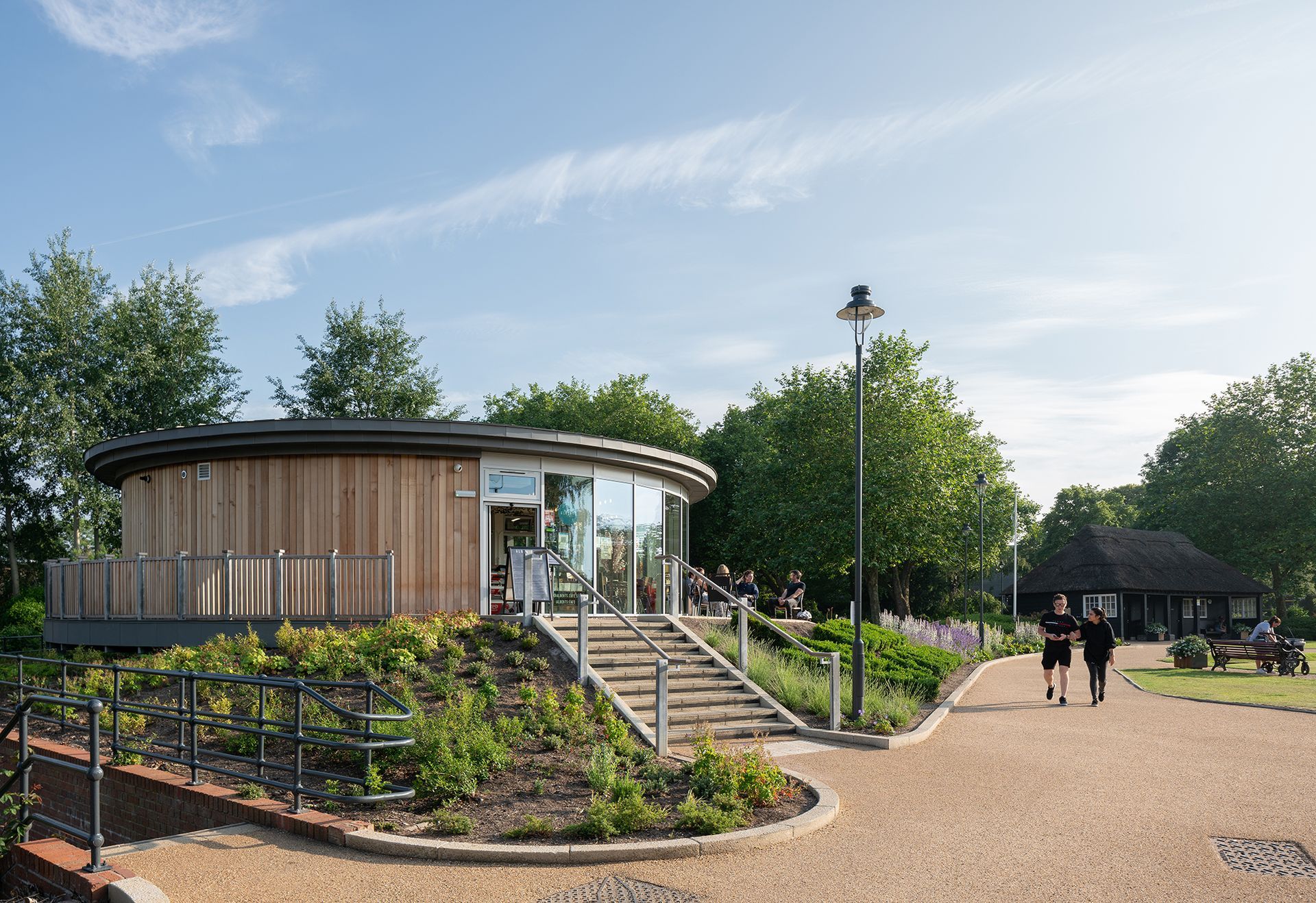 The works comprised a combination of heritage restoration and new build interventions. These included a new riverside café and an amphitheatre to improve the park’s offer and create revenue that can be reinvested in its upkeep, particularly in maintaining a high standard of horticultural care. Other works included restoration of the historic Mottram Shelter; development of a new teaching space and greenhouse; installation of bespoke stone pillars and gates to the main entrances; construction of new aviaries; and comprehensive resurfacing across the park. TEP also designed significant areas of new tree, shrub and herbaceous planting, as well as a green roof atop the café.