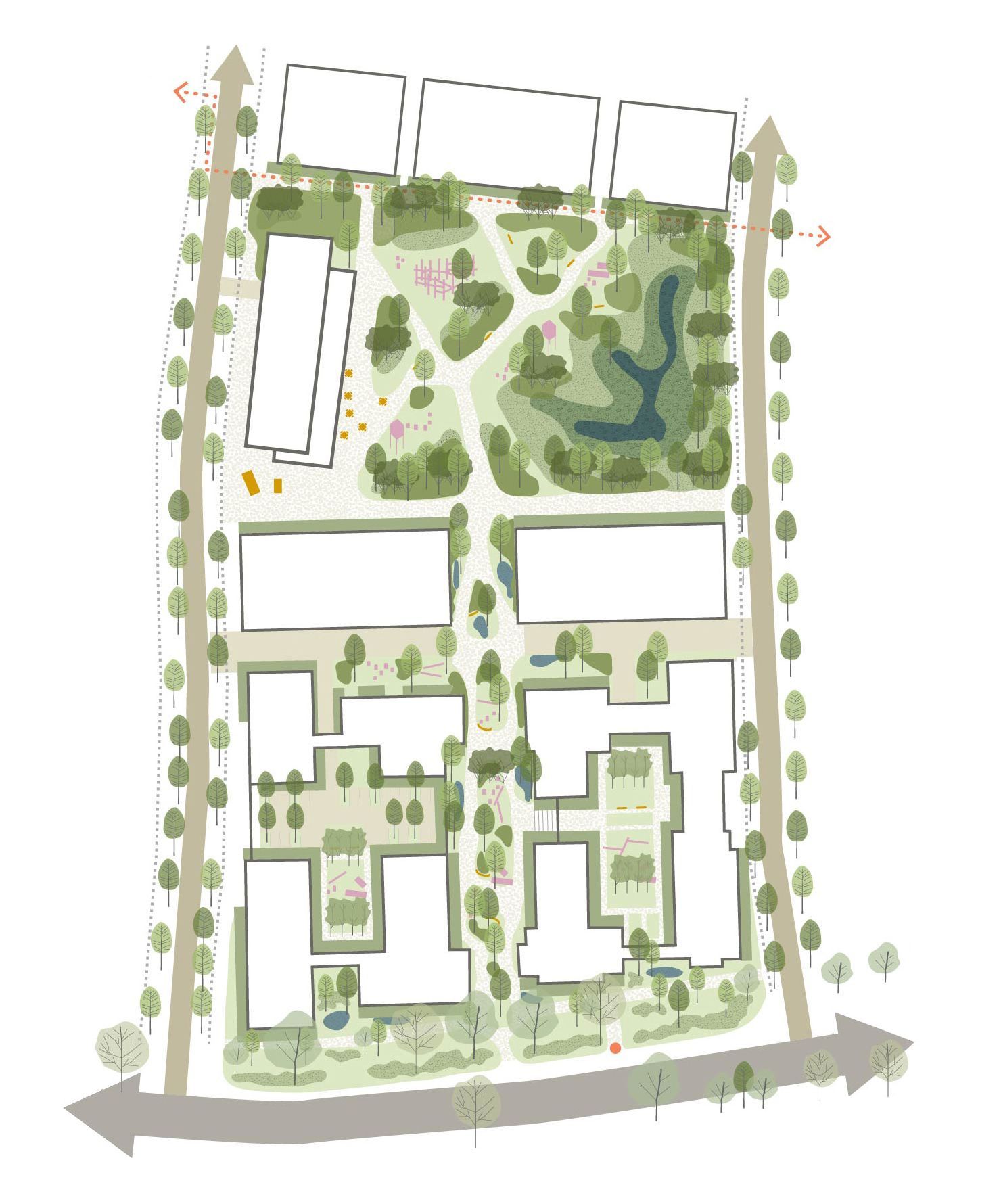 ButtonBiodiversity enhancement is integral to our work, with native planting, wildlife habitats, and sustainable drainage systems (SuDS) woven into designs to improve ecological value, air quality, and natural water management.